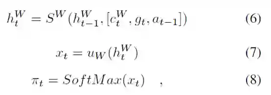 其中w,Wa,Ua,ba是可学习的参数,ht-1是Worker LSTM上一时刻的隐层状态。Manager的注意模块与Worker的结构一样。