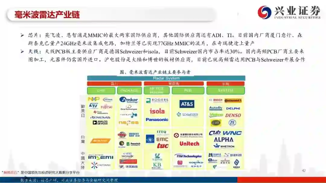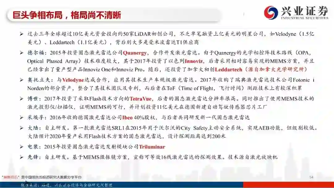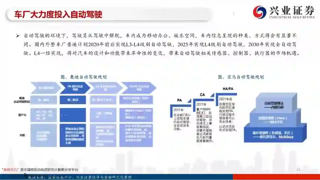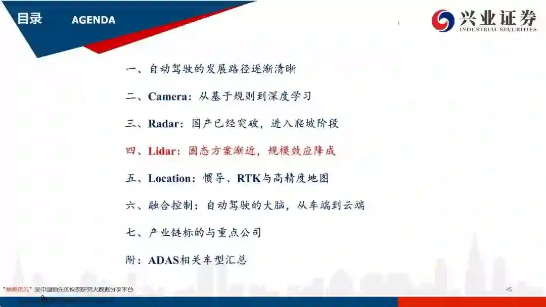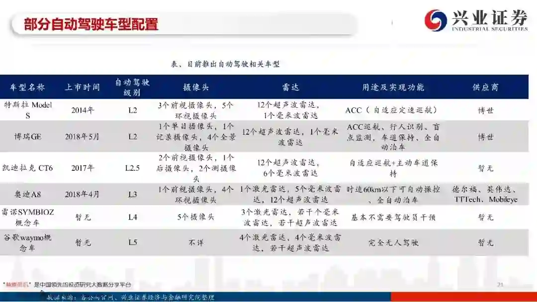 近年来,汽车电子正在朝着电动化、网联化、智能化、共享化方向发展,尤其是大幅精进的自动驾驶技术备受关注。本文汇总了自动驾驶相机、雷达、高精地图等产业链情况,从中可以看出汽车无人驾驶行业蓝图。如今,汽车无人驾驶行业蓝图已现,其产业链上下游已经出现支撑公司,并在逐渐走向成熟。