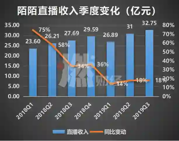 直播当季收入为32.75亿元人民币,较去年同期的27.69亿元人民币增长18%,增速与今年第二季度持平。直播业务增速降低,陌陌并不是个案,整个秀场直播行业都在经历用户红利消失殆尽的问题。