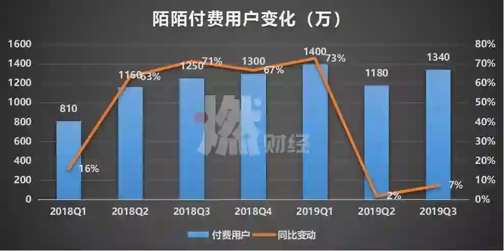 陌陌近7季度付费用户变化 制图 / 燃财经