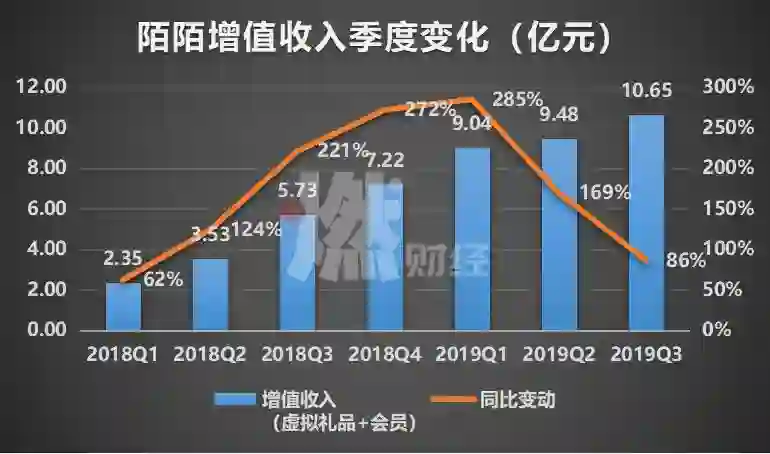 增值服务主要包括虚拟礼物和会员订阅费,三季度该部分业务营收为10.65亿元人民币,较去年同期的5.73亿元人民币同比增长86%,但较今年二季度169%的增速大幅放缓。