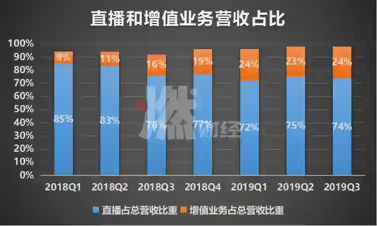 据陌陌三季度财报,和之前几个季度相比,直播业务收入在总收入的占比,已经有了明显下滑。