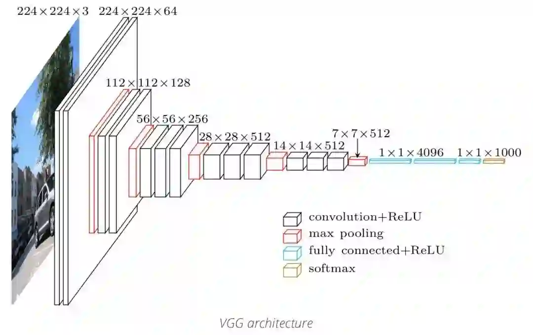 VGG,其名字来自于在 ImageNet ILSVRC 2014 竞赛中使用此网络的小组组名,首次发布于论文」Very Deep Convolutional Networks for Large-Scale Image Recognition」, 作者是 Karen Simonyan 和 Andrew Zisserman。以今天的标准来看这个网络谈不上深度,但是在发布之际 VGG16 比当时常用的网络要多一倍的层数,其推动了「深度 → 更强大性能 → 更好结果」的浪潮(只要训练是可行的)。