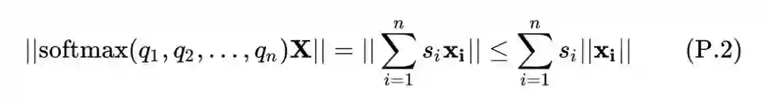 引理 4.1说明,attention 层的输出幅度其实只取决于 Value 和输出的映射矩阵,即: