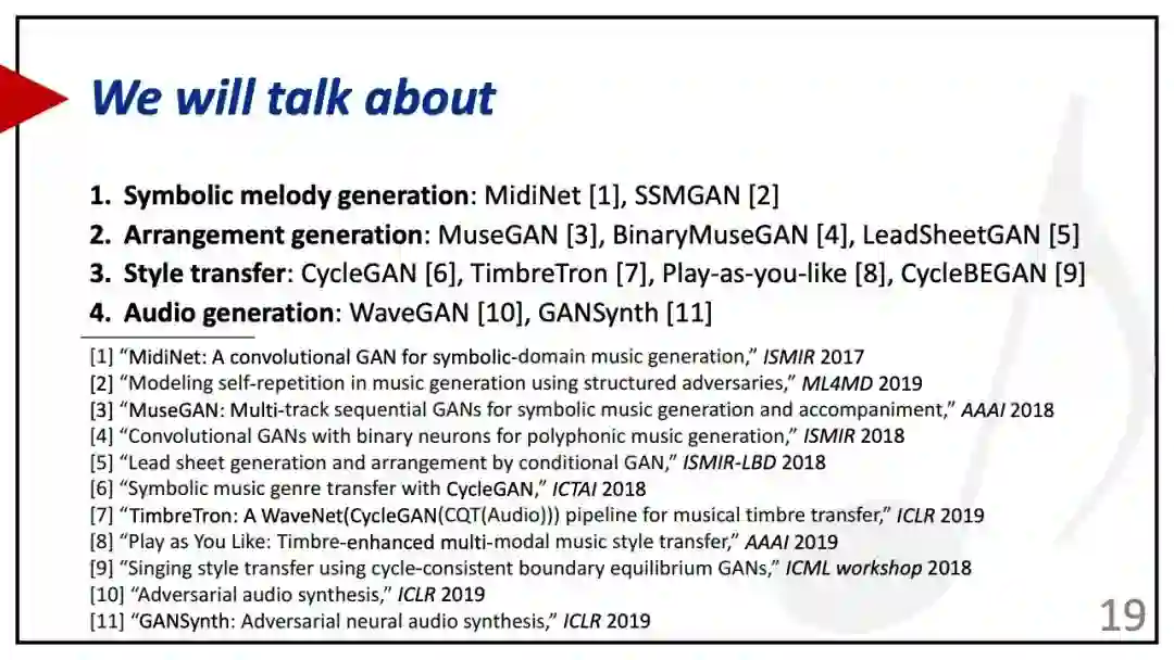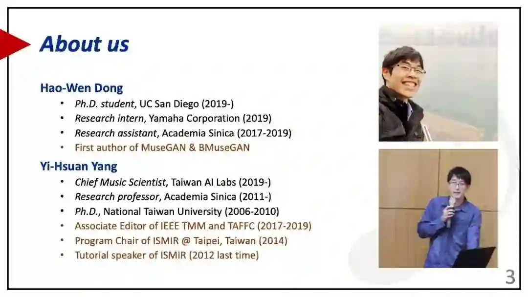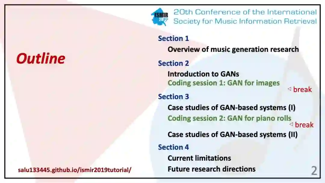 【导读】作为主流的生成模型,GANs系列模型,可以在方方面面进行应用。来自加州大学和台湾中央研究院的Hao-Wen Dong, Yi-Hsuan Yang,近期在ISMIR 2019上,做了《Generating Music with GANs》的tutorial,并附上了相关代码,对GANs生成音乐感兴趣的同学,不要错过。