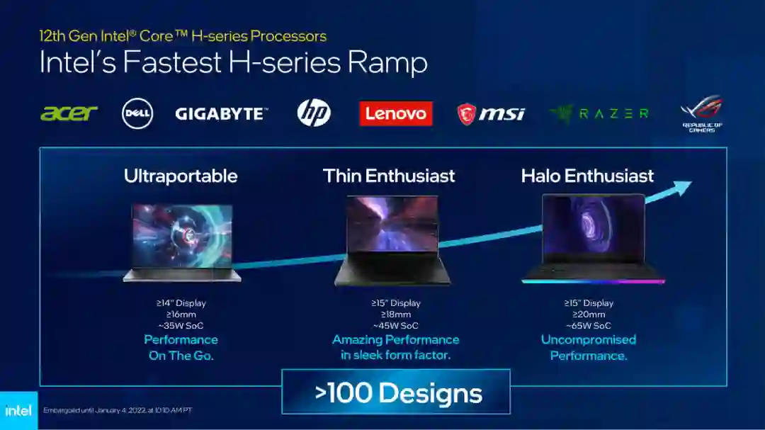 在 2022 CES 展会上,英特尔第 12 代酷睿 Alder Lake 移动端处理器终于亮相了!