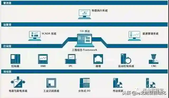 什么是全集成自动化呢?顾名思义,就是把所有的自动化产品都集成到一个统一的平台来管理。自动化产品根据其用途、性质的不同,可以分为现场层产品、控制层产品和运营层产品。