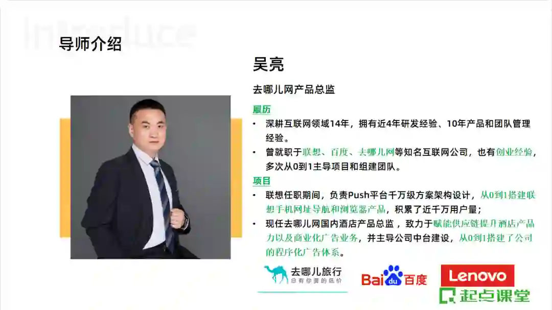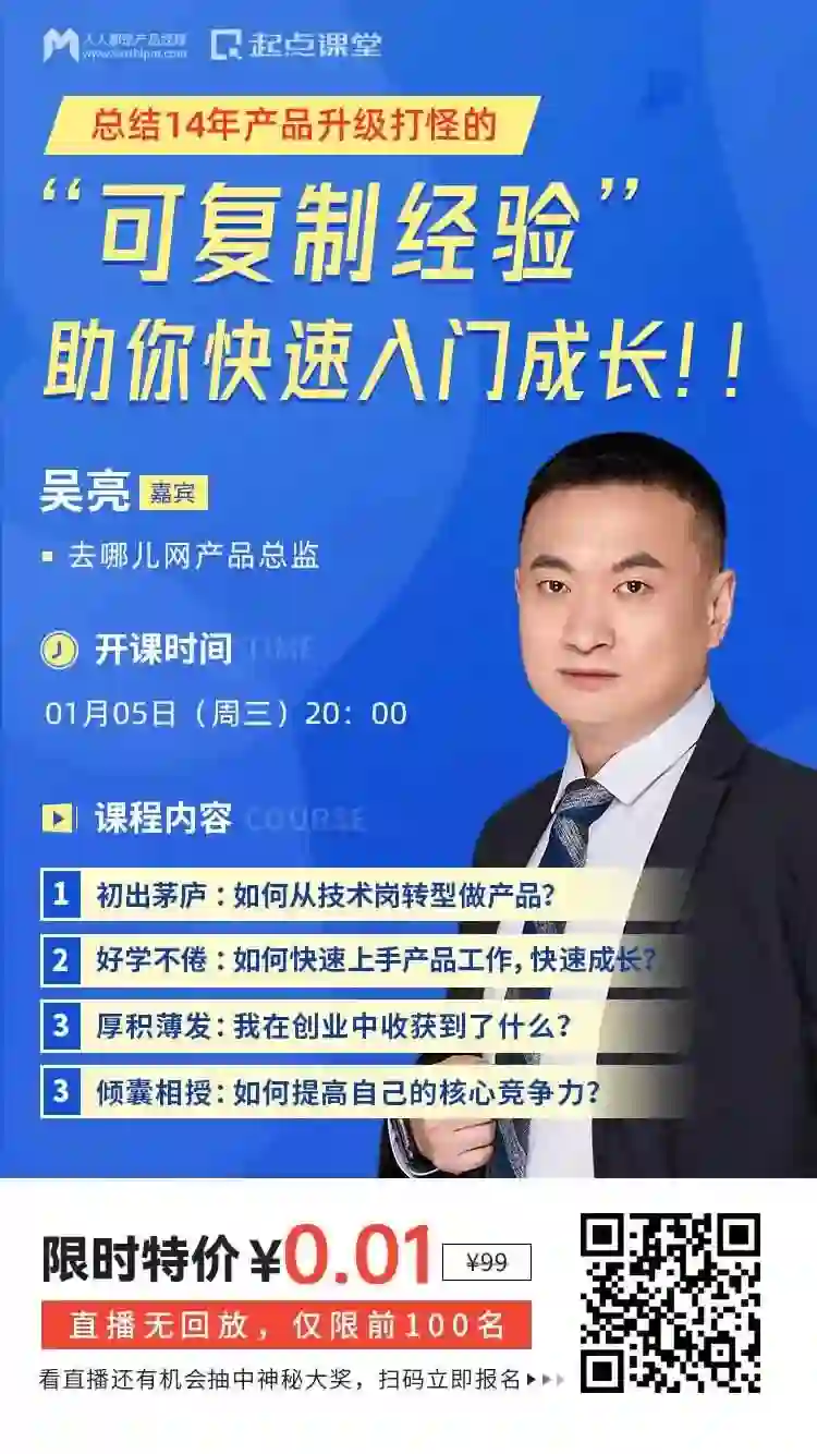 本次特别邀请了去哪儿网产品总监@吴亮直播授课。