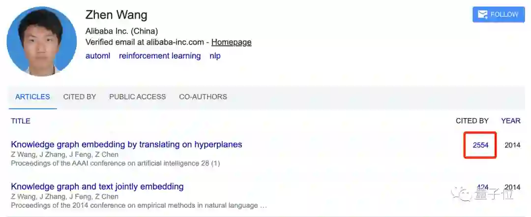 引用量超过2500次的知识图谱补全算法TransH,正是他以一作身份完成的工作。