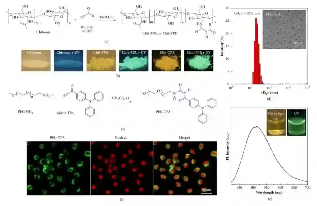 香港科技大学唐本忠院士课题组报道了一种简单的无金属参与、无预修饰的一步法生物偶联新策略,实现多级对象的功能化标记与应用,如天然高分子、合成高分子、多肽、蛋白质、活细胞快速染色、活细菌快速识别染色、无机材料修饰等。