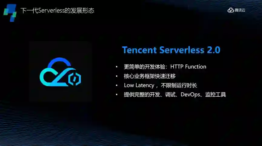 作为继虚拟机、容器后的第三代通用计算平台,无服务器架构是腾讯云原生的重点发力领域。腾讯云 serverless2.0 在已有的事件触发函数的基础之上,根据实际的用户使用场景,进一步提供了面向 http 场景的 http function 和 http service,提供了高层次的通用开发框架,不仅更好的支持开发者面向 webservice 的开发诉求,也可以支持已有业务代码向 serverless 架构的无缝迁移。
