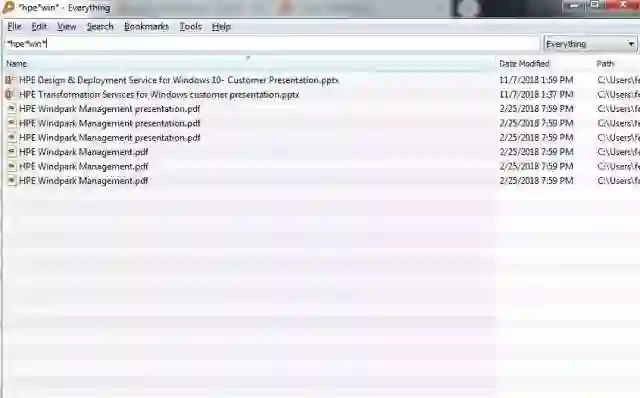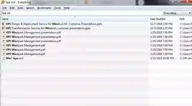 如果想搜索的文件名中同时包含多个关键词,可以在搜索框中顺序敲入那几个关键词,中间用空格分开,例如包含hpe和win的文件,可以输入hpe然后跟着一个空格,然后输入win,结果如下图所示: