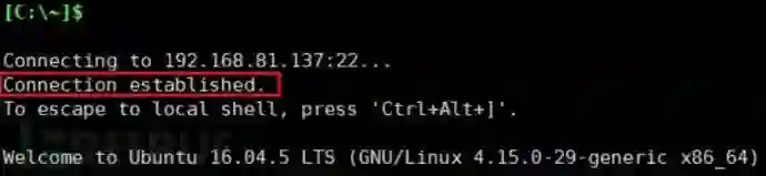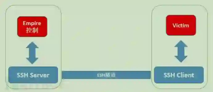 本文想通过标准的SSH的端口转发建立SSH形式的加密隧道,用于加密、隐蔽传输恶意流量,从而避免通过流量检测发现恶意行为。复现实验部分以C&C通信流量为例进入实验。通过SSH隧道进行加密和隐藏的C&C流量在外部流量特征分析仅表现为标准SSH流量。