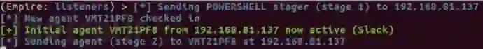本次实验使用Empire生成简单的PowerShell脚本,建立最简单的C&C通信。下面简单概括主要步骤。