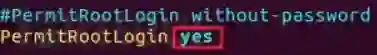 编辑/etc/ssh/sshd_config文件中允许口令登录PermitRootLogin配置如下图: