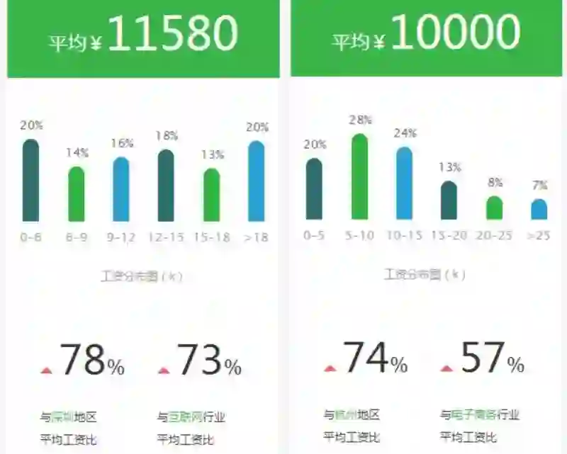 腾讯平均薪资11580元,比同行高出73%,比深圳平均工资高出78%;阿里平均薪资10000元,比同行高出57%,比杭州平均工资高出74%。腾讯整体平均工资比阿里更高。
