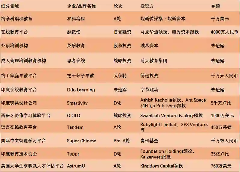 本周资本动态活跃,英孚教育引入璞米资本重大投资;字节跳动正在与印度在线教育平台Lido Learning就投资进行谈判;和码编程完成千万美元级A轮融资......