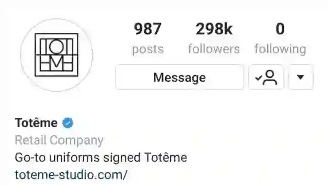 举一个例子,我被淘宝种草了一个瑞典小众品牌Toteme,它在instagram上粉丝不到30万。