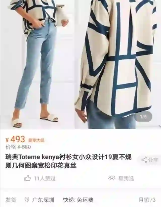 在淘宝上,一件完全仿Toteme的衬衫价格不及正品1/3,可以月销73件。作为半个淘宝店主,我可以肯定地告诉你,月销70件算是爆款了。