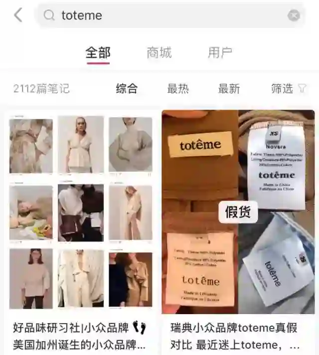尽管Toteme全球范围内非常小众,在中国的小红书上却有2112篇相关笔记。