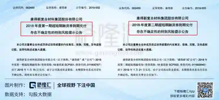 今年1月14日,康得新复合材料集团股份有限公司(下称“康得新股份”,002450.SZ)接连发布两份到期债务兑付存在不确定性的公告,涉及违约的资金为15亿元。