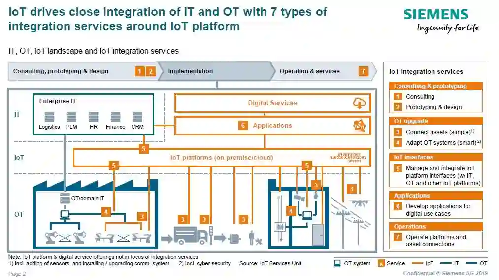 这张图显示了西门子认为围绕物联网平台应当开展的7种类型的集成服务,推动IT和OT的紧密集成,也体现了物联网服务要做的事情。