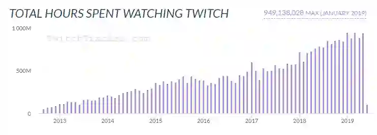 Twitch发布于2011年,在2014年以接近10亿美元的价格被亚马逊收购,主打游戏直播。有数据显示,Twitch上每月活跃主播达到220万,日活用户1500万,日均使用时长95分钟,平均同时在线100万人。