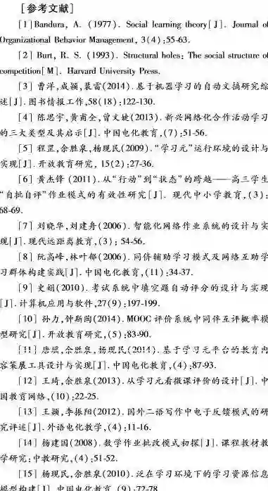 从理论的角度看,联通主义学习理论、社会化学习理论、网络化合作活动学习理论都为作业社会化批阅实践提供了支持,而作业的社会化批阅同样发展了这些理论。联通主义强调学习是将不同的信息源和节点连接并形成交互网络的过程,学习者习得的知识不再是固化的,而是在交互网络中不断流通和主动建构得到的知识流(唐瑶等,2014)。作业社会化批阅将学科专家、教师、学生、家长连成评价网络,以学生知识评价为网络中的信息流,在网络节点与信息流的交互下促进学习者对知识的整体性理解、掌握和迁移。社会化学习理论重视交互决定论和观察学习,即学习者通过观察其他个体的行为并通过其强化结果反馈而习得新行为或对已有行为进行矫正(Bandura,1977)。网络化合作活动学习理论强调通过学习平台提供的学习活动建立师生交互、生生交互的合作关系,从而促进知识有意义建构和学习效果的有效提高(Burt,1993;陈思宇等,2013)。作业社会化批阅拓展了社会化学习,使学习者通过网络化交互批阅和反馈促进自身知识的掌握。另一方面,作业社会化批阅也拓展了网络化合作活动学习理论的应用空间和社交网络,借助网络学习平台和社会化的用户群,作业批阅从学生和教师的双向交互延伸为基于社交网络的社会化学习活动,这样更有利于学习的发展和社会化学习共同体的建立,从而提高作业批阅的权威性。