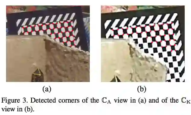 由于Kinect V2相机无法控制倾斜,很难获得立体相机系统和TOF相机系统之间恒定的刚性变换。为此,本文提出了一种基于场景和摄像机的几何约束的新的自标定方法。