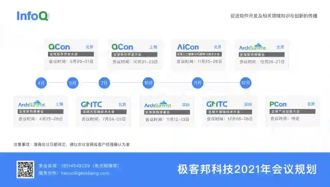 另外除 AICon 北京,今年我们还将在深圳、北京等地举办 2 场技术大会,方向覆盖前端、架构等方向,购票及咨询请联系票务小姐姐:13269078023(微信同电话)