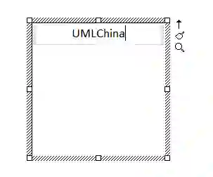 【步骤2】点击工具箱中的,再点击图的顶部中间,在文本框中输入UMLChina,拖动边界框的边调整到合适的大小。