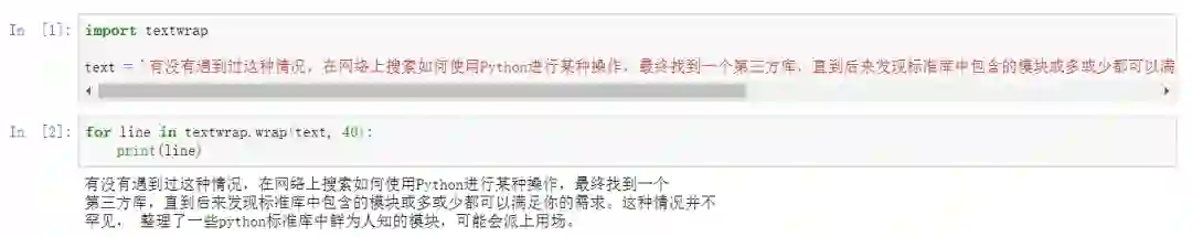 这个模块具可轻松包装和缩进纯文本的功能, 当你的奇怪需求是将所有打印内容以80个字符包装到终端时,它很有用。例如,