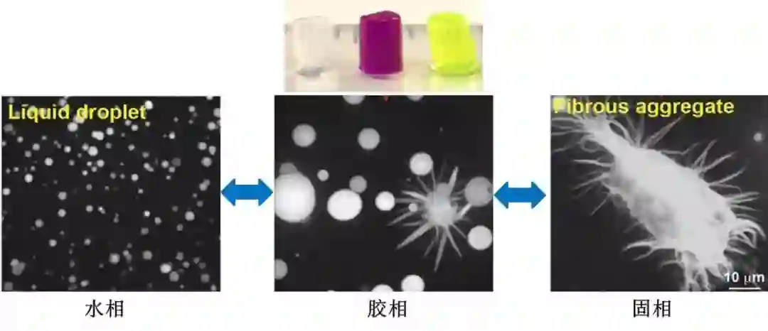 在细胞王国内,蛋白、核酸(DNA、RNA)就是一个个公民,为了行使具体的细胞功能,就需要它们“聚众行事”,形成一种胶状的形态,事成之后,再好聚好散,各奔东西。然而,天有不测风云,有时这些蛋白、RNA会抱得太紧,无法分开,变成了一种固状的形态。这种固态的聚集还会绑架其它蛋白和核酸加入,扰乱细胞的正常功能,并最终造成细胞死亡。为了应付这种情况,细胞内有一套专门的垃圾清除和回收系统,会检测这种聚集,并将其分解、消化。