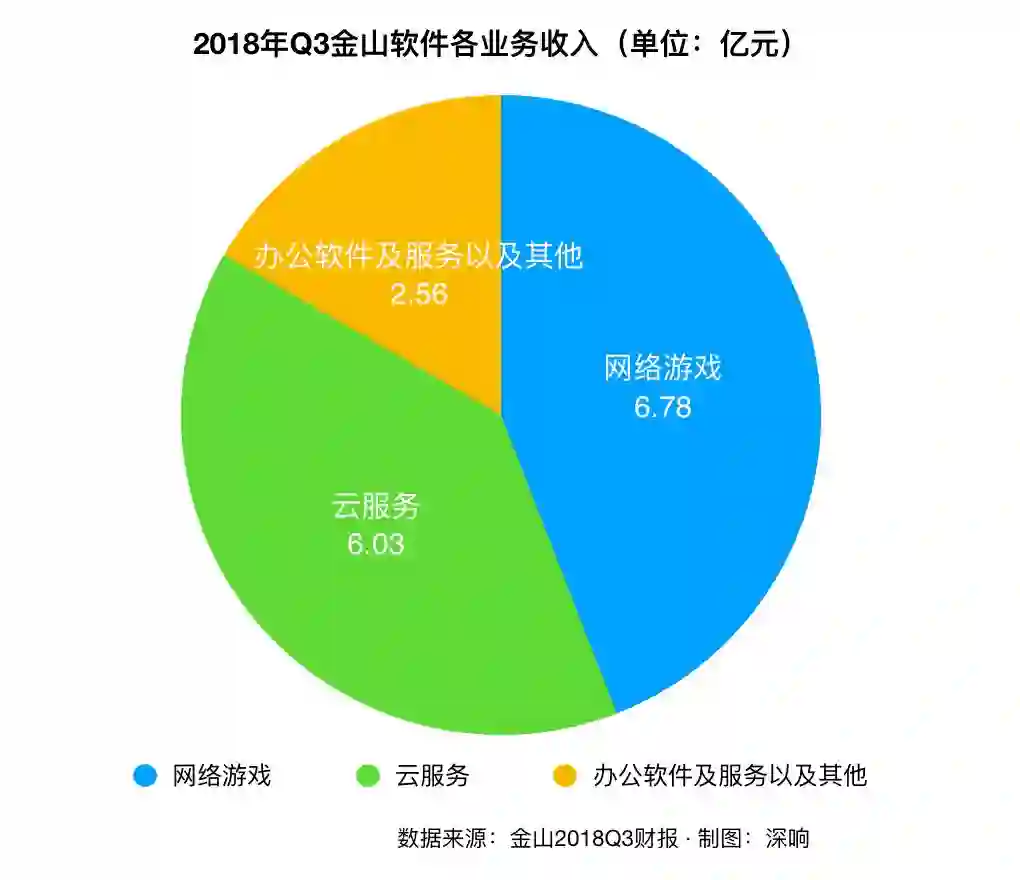 根据金山最新的2018Q3财报,云和网络游戏的收入不相上下,办公软件的收入相比而言绝对值要小于其他两者。