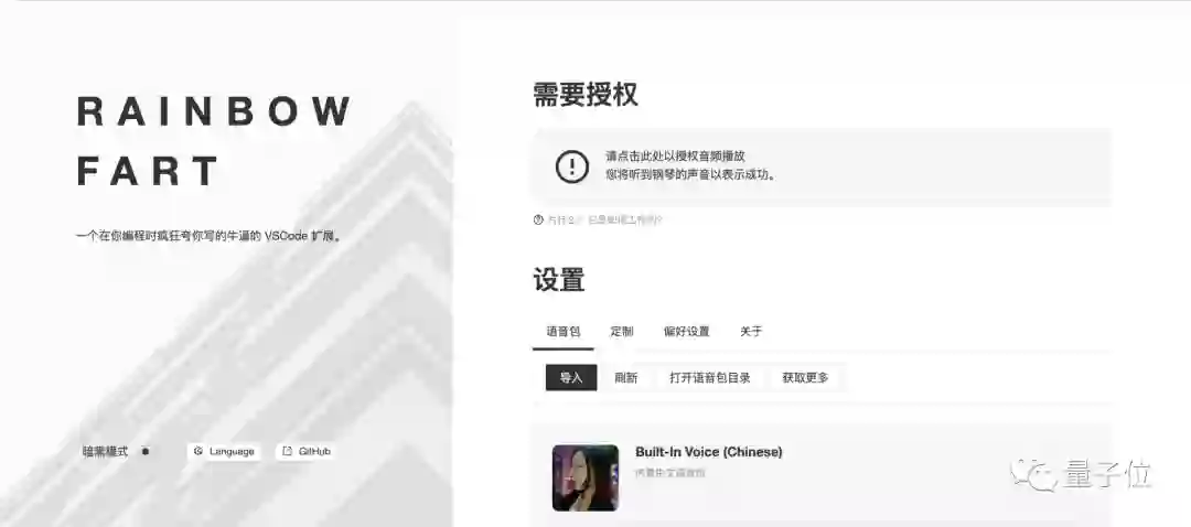 点击授权,保持网页打开,再回到 VSCode 中,无限彩虹屁就可以听起来了。