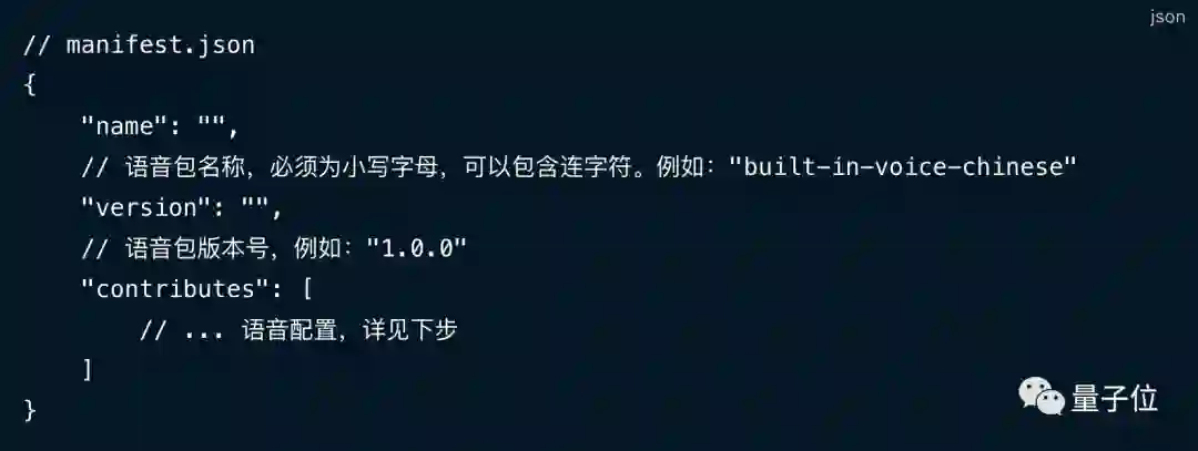 创建一个包含关键字段的 .json 元信息文件。