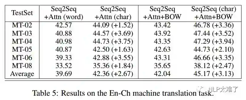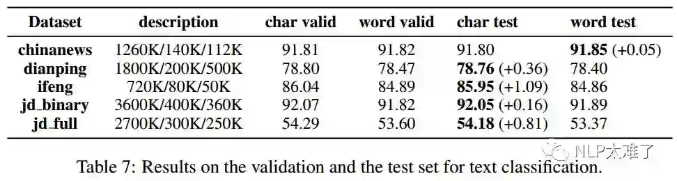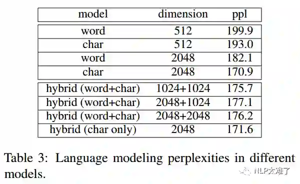 实验结果显示,基于char级模型效果总是比word级模型效果好,作者基于这些实验结果给出了一些原因。