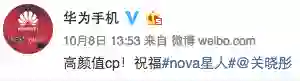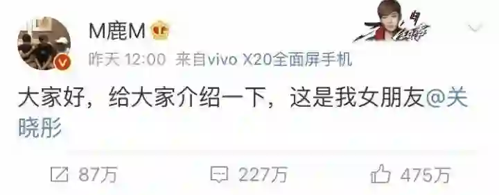 “大家好,给大家介绍一下,这是我女朋友@关晓彤”。国庆假期的最后一天,鹿晗和关晓彤在微博上来了个甜蜜暴击,就问你惊不惊喜,意不意外。