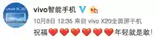 中企哥注意到,鹿晗是 vivo 刚公布的代言人,而 vivo 在节前刚刚发布了自家的全面屏新机 vivo X20,鹿晗作为代言人,发微博的小尾巴自然是 vivo 手机的“vivo X20 全面屏手机”。