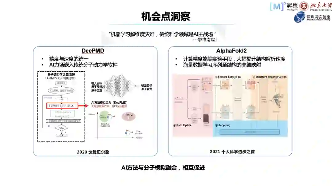 现在,AI 和分子模拟已经开始进行融合,并且产生了有突破性的工作。这里我们看两个案例。