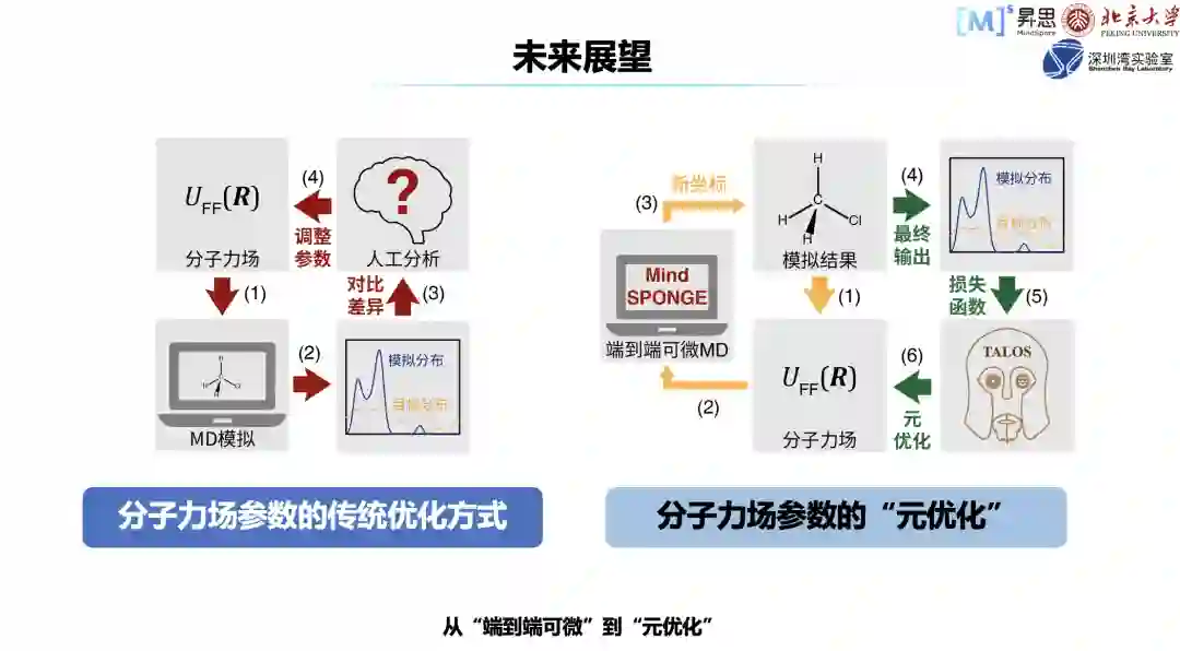 基于分子力场的模拟,分子力场肯定是最重要的。传统优化方式主要还是靠人工经验,比如先有力场,就可以做环境的模拟,模拟出的分布很可能不符合实验结果,这样就会产生误差;传统方式是通过人进行分析,是不是有些参数可以改一改,再去尝试一下。