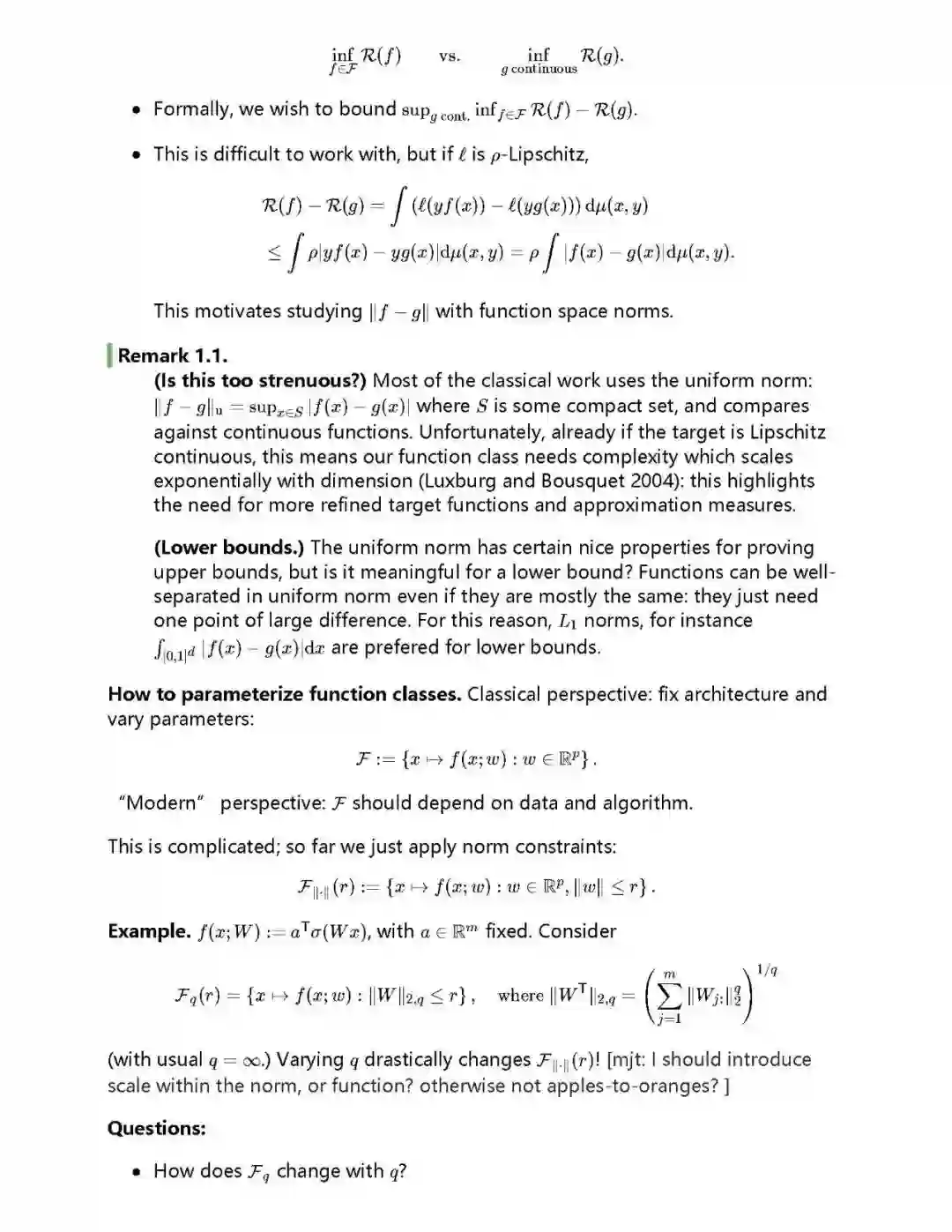 优化 (从第9节开始): 对于一个分类问题,给定一个有限的训练集,存在寻找低训练误差和低复杂度的预测器的算法。