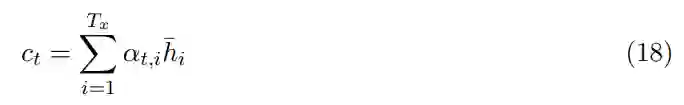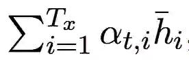 如下公式 23 所示,隐藏向量 h_t 首先会传递到全连接层。然后校准系数 α_t 会对比全连接层的输出 u_t 和可训练上下文向量 u(随机初始化),并通过 Softmax 归一化而得出。注意力向量 s 最后可以为所有隐藏向量的加权和。