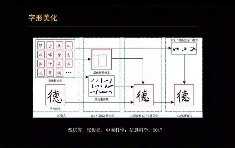 北京大学王选计算机研究所副教授、字体中心副主任、CSIG文档图像分析与识别专委会和三维视觉专委会常务委员连宙辉,以《面向文字的图形图像生成技术新进展》为主题,向大家介绍了在面向文字的图形图像生成方面取得的一些新进展,包括:属性可控的定制字体生成[TOG’20];基于双模态学习的紧凑高质矢量字体自动生成[TOG’21];基于元学习的任意风格汉字书写轨迹合成[EG’21];内容感知的文字标志(Text Logo)图像生成[CVPR’22]等。