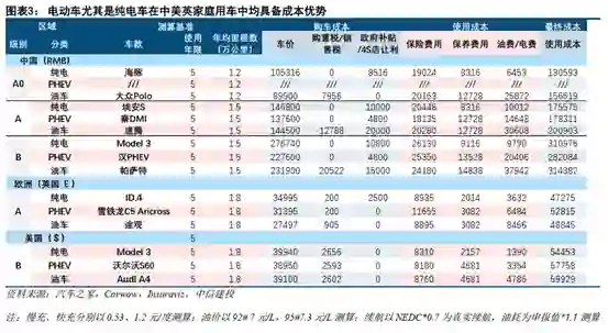 中信建投近期的一份报告,对燃油车和电动车从购车成本、用车成本、保养成本等多个维度进行测算,发现在同级别车型中,燃油车的全生命周期成本明显高于电动汽车。