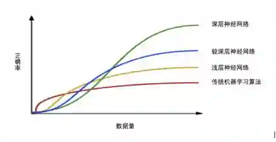 预处理:基于人脸检测结果,对图像进行处理,为后续的特征提取服务。系统获取到的人脸图像可能受到各种条件的限制或影响,需要对进行大小缩放、旋转、拉伸、灰度变换规范化及过滤等图像预处理。由于图像中存在很多干扰因素,如外部因素:清晰度、天气、角度、距离等;目标本身因素:胖瘦,假发、围巾、银镜、表情等。所以神经网络一般需要比较多的训练数据,才能从原始的特征中提炼出有意义的特征。如下图所示,如果数据少了,神经网络性能可能还不及传统机器学习。