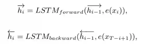 而对于基于注意力机制的seq2seq模型,有着如下的定义,给定输入句子X以及输出句子Y,文章中使用双向的LSTM对输入进行编码,因而可以计算得到LSTM的隐状态: