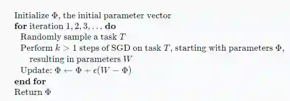 像MAML一样,Reptile试图初始化神经网络的参数,以便通过新任务产生的少量数据来对网络进行微调。