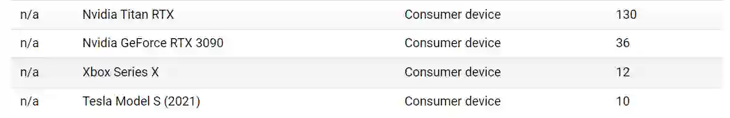 家用游戏主机Xbox Series X,算力为12teraflops。特斯拉的Model S ,算力为 10teraflops。