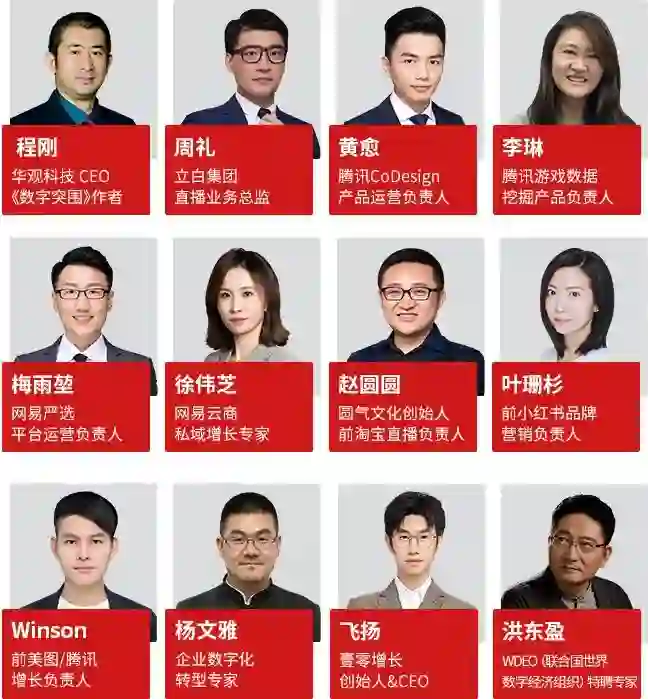 他们中有来自腾讯、网易等互联网头部企业或者独角兽企业的资深运营增长操盘手,有负责过上百家企业数字化升级的资深业务负责人,还有在电商直播、私域变现、品牌营销等等各个领域实战多年的行业专家。